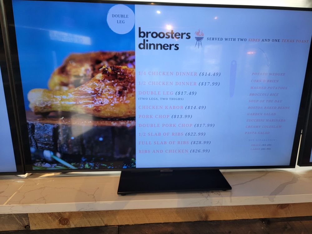 Broosters Char-Broiled is an American Barbeque restaurant located at 1010 Plainfield Road in Darien, IL. This family-owned establishment offers a variety of mouth-watering dishes for both lunch and dinner. With a diverse menu that includes Family Pack Carry Out options such as the 1 1/2 Chicken Family Pack, 1 1/2 Full Slab of Ribs and 2 Whole Chickens Family Pack, and more, there is something for everyone to enjoy. Their delicious dinners like the 1/2 Chicken Dinner, Chicken Kabob, and Chop and Chicken come with generous portions and are served with sides and Texas toast. The Fresh Salads, including the Chicken Caesar Salad and Chicken Salad Supreme, are perfect for those looking for a lighter option. Broosters Char-Broiled is a must-visit spot for those craving authentic American barbeque flavors.